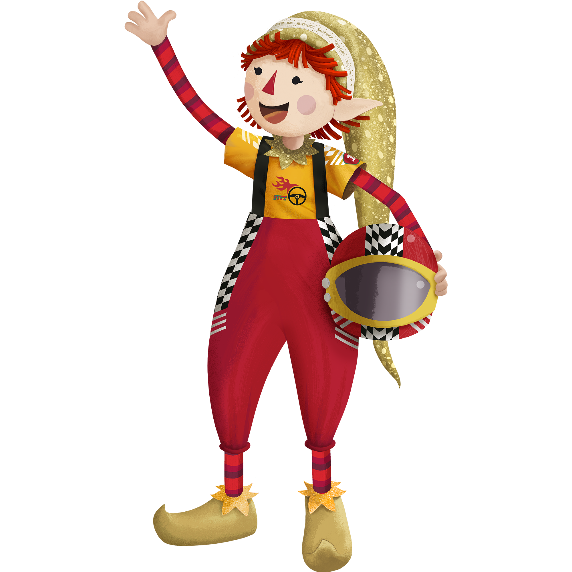 ¡Nadie logra atraparlo! Este travieso y rápido duendecillo anda en su coche de carreras por toda la Aldea Nöel y es el experto en hacer todos los juguetes con ruedas que aman los niños cada Navidad.